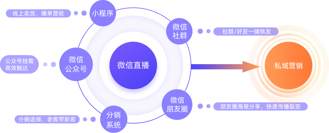 微信直播+小程序商城+公眾號(hào)+社群+朋友圈+分銷系統(tǒng)=私域營(yíng)銷